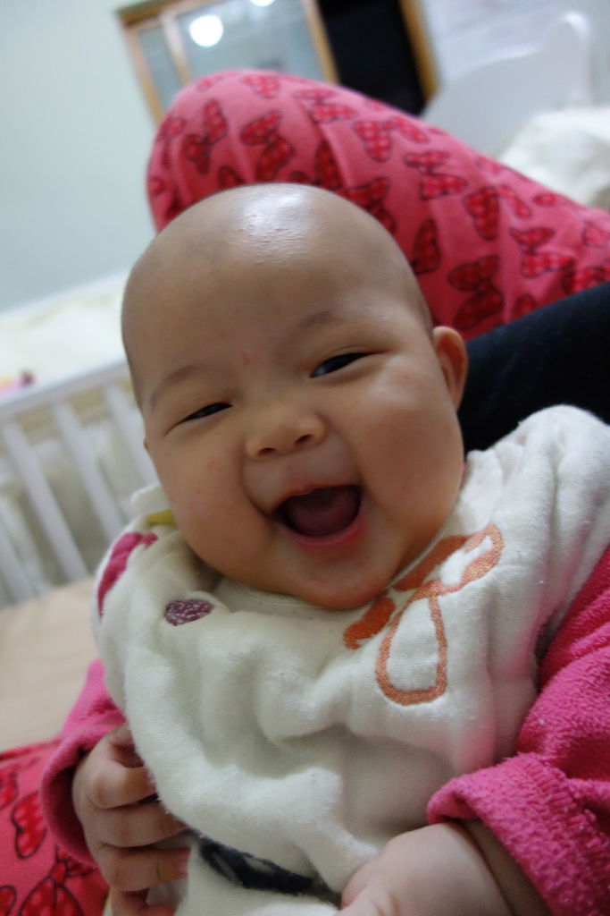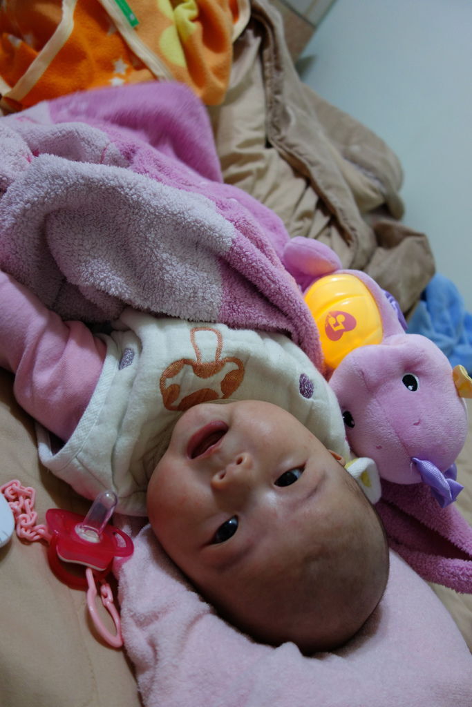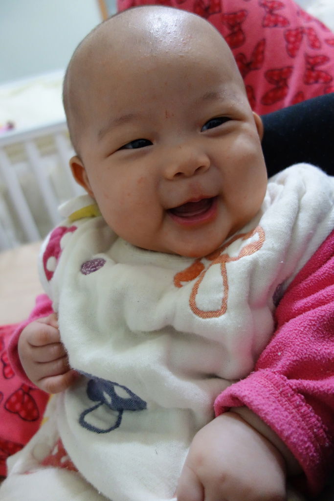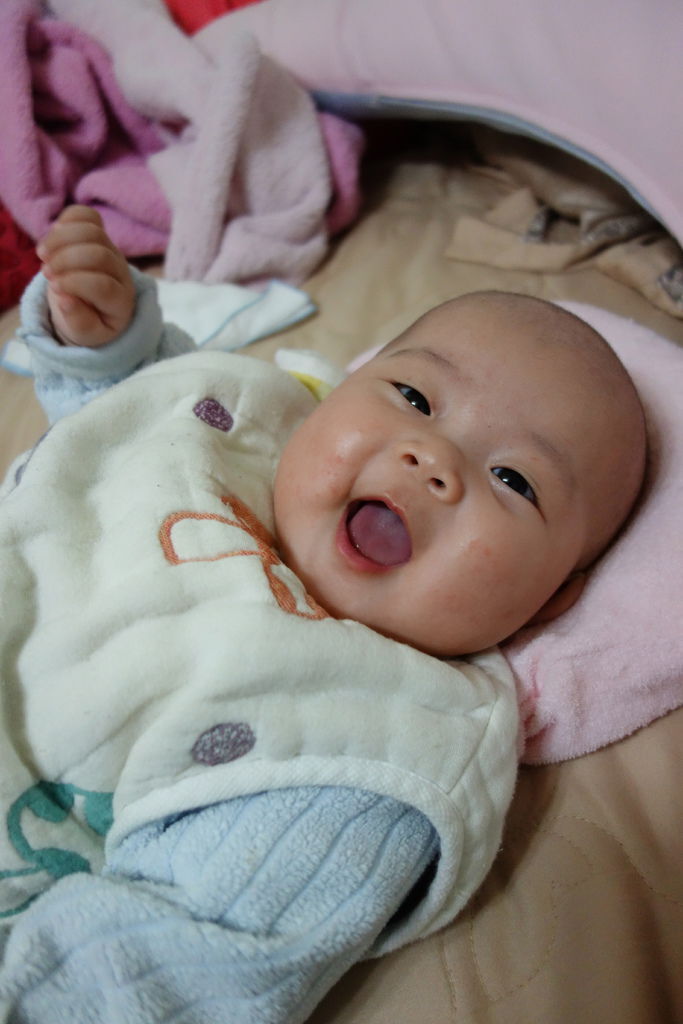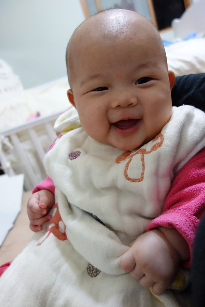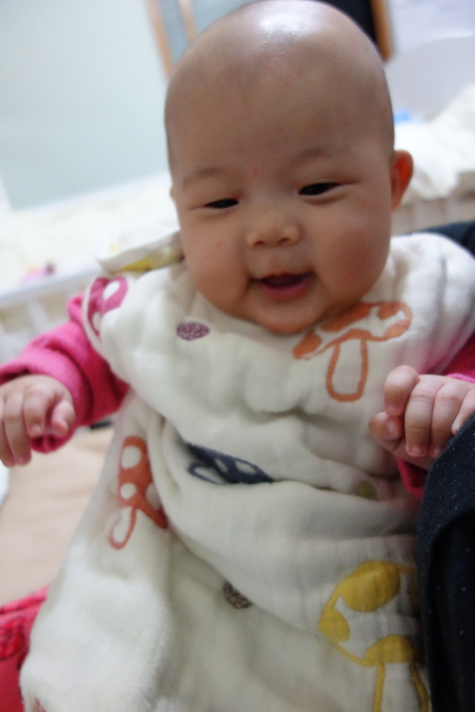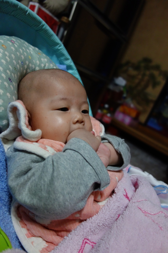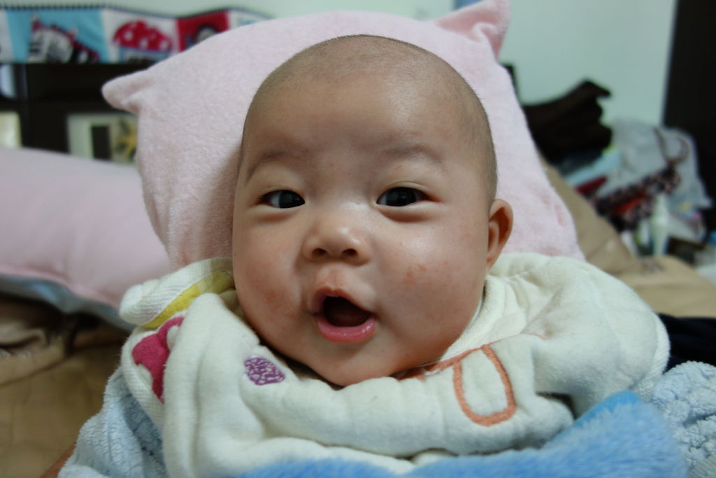 因為她臉頰下巴脖子肉很多 我常忘記幫她保持乾爽讓她睡不好