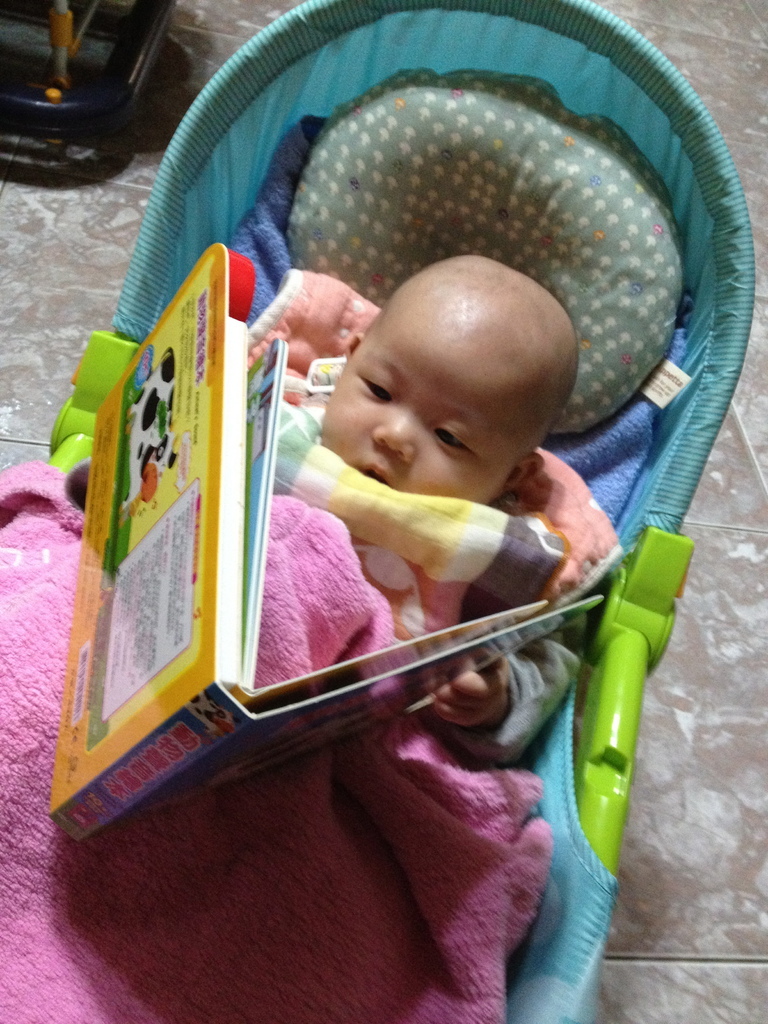 圖:太早起來歡 被嘛咪抓出來讀書 累壞我了
